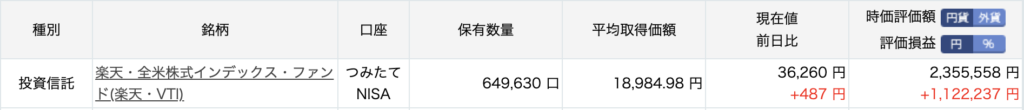 私が積立NISA時代に購入していた楽天VTIが90%以上のリターンを出しています。
