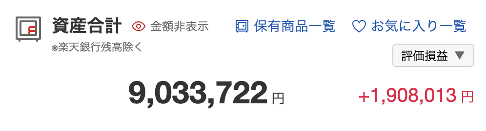 こちらが私がメインで使っている楽天証券の資産合計です。