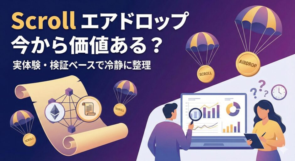 この記事では、そうした迷いを前提に、Scrollのエアドロップ(シーズン2以降)が今からでも検討対象になるのかを、過度に期待せず整理していきます。