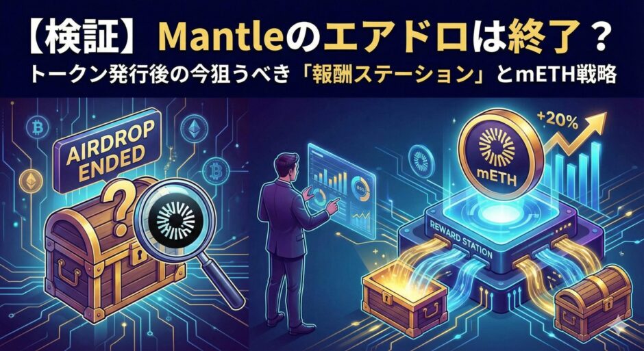 この記事では、初期エアドロが終わった今のMantleにおいて、「Mantle Rewards Station」や「mETH」を目的に触る価値があるのかを冷静に整理します。