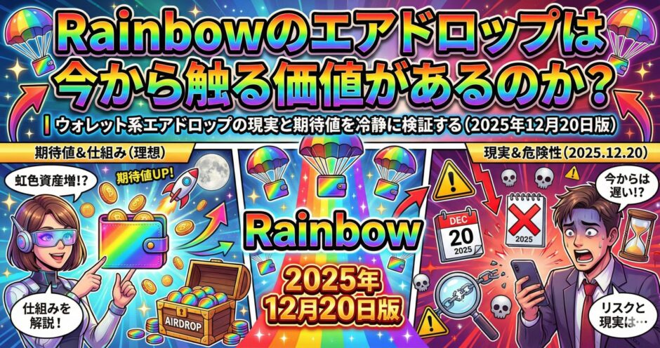 Rainbow(レインボー)のエアドロップが話題になったとき、率直に感じたのは「ウォレット系は“あとから触っても手遅れ”になりやすいのでは?」という疑念でした。