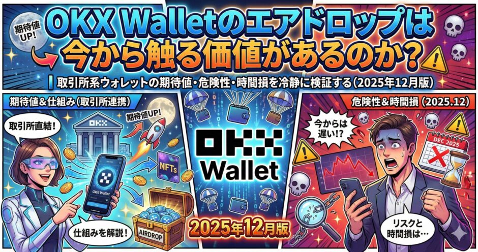 「OKX Wallet専用トークンがあり、それが将来大規模配布される」といった話は、少なくとも2025年12月時点で、確定事項として扱うのは危険です。スナップショットや配布基準が不明な状態で期待を膨らませると、時間損につながりやすいです。
